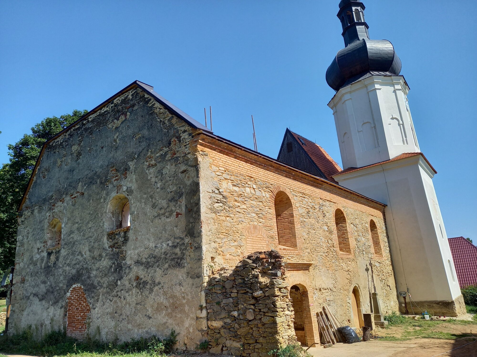 Celá obnova kostela má velkou výhodu, že dozor stavby provádí autoři projektové dokumentace z ATELIERU SOUKUP OPL ŠVEHLA, s. r. o. Ta je připravena velmi odborně s respektem k původnímu charakteru stavby. Také citlivě reagují na věci, které se objevují až při vlastní realizaci. Při obnově věže s cibulovitou bání a makovičkou s pozlaceným křížem, opravě zvonové stolice a všech vnitřních konstrukcí předvedla svoji vysokou profesionalitu, odbornost a kvalitu firma Tegmento, s. r. o., z Rokycan. Obvodové zdi lodi opravila velmi zdařile firma STAFIKO stav, s. r. o., z Domažlic. Jsme velmi rádi, že zhotovení krovu a položení střechy v několika etapách (z důvodu postupného financování) vyhrála již ověřená a jmenovaná firma Tegmento. Proto věříme, že i „barokně“ navržený krov se střechou budou provedeny kvalitně a přitom z hlediska nákladů velmi efektivně.