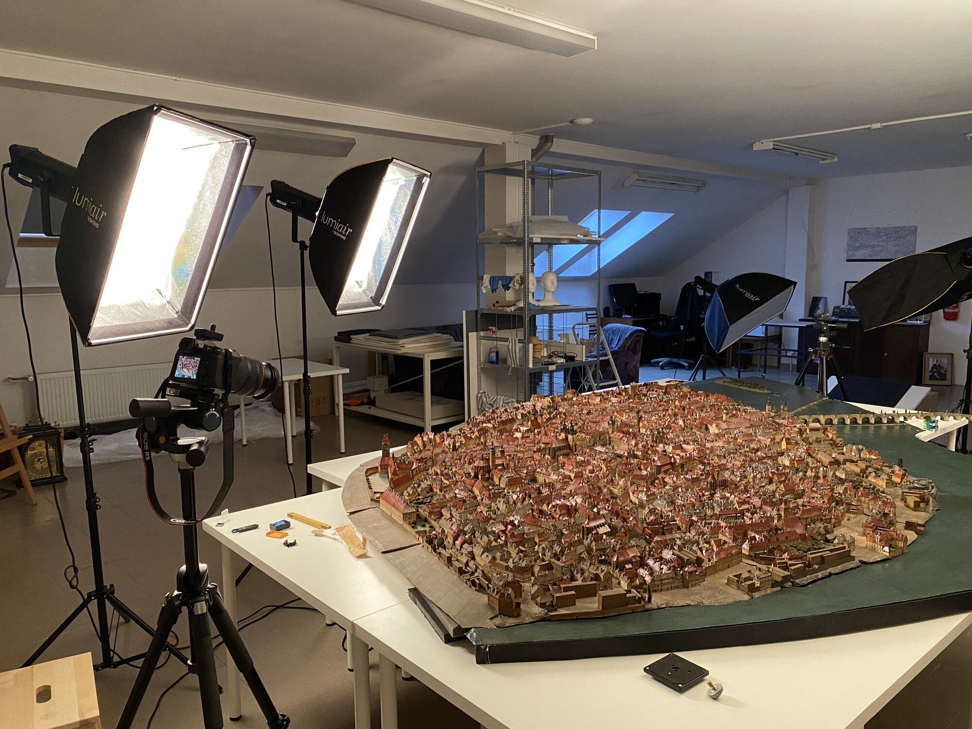 V první řadě bylo potřeba naplánovat odvoz modelu z hlavní budovy muzea do depozitáře a na restaurátorská pracoviště. To byl vzhledem k celkové rozloze modelu (asi 19 m2) sám o sobě náročný úkol, protože se musely jednotlivé díly modelu změřit a uložit do speciálních krabic. V další fázi proběhl průzkum a restaurování, které trvalo zhruba 1,5 roku. Rozložení modelu na jednotlivé části bylo také dobrou příležitostí pro pečlivou fotografickou dokumentaci. V tuto chvíli probíhají přípravy na plánovanou expozici, a protože se bude model vystavovat inovativní formou, máme před sebou ještě spoustu práce.